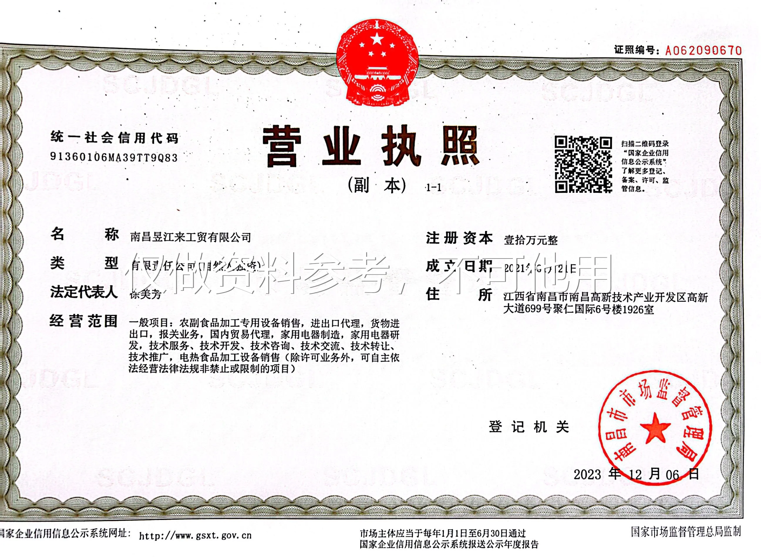 Registration No. : 91360106MA39TT9Q83